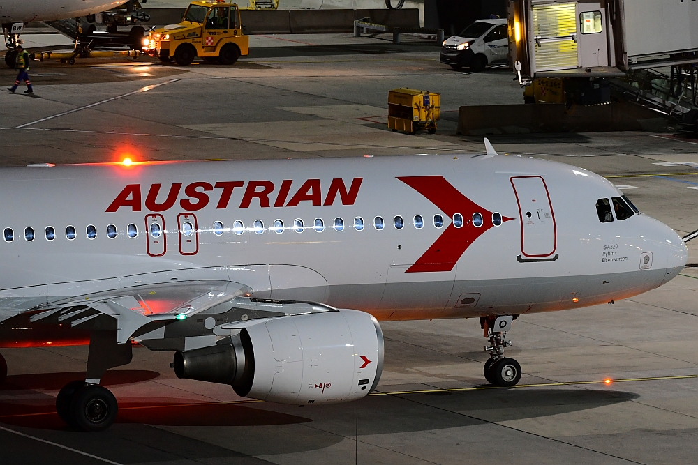 Danach rollte der A320 zur Parkposition F04, welche die AUA vorab per Presseaussendung bereits bekannt gegeben hatte. Am Parkhaus 4 wartete bereits mehr als ein Dutzend Planespotter trotz der späten Stunde auf die Ankunft des neuen Retro-Jets, der jene Farben trägt, in denen Ende der 1980er Jahre die A310 und MD-80 des rot-weiß-roten Carriers unterwegs waren.