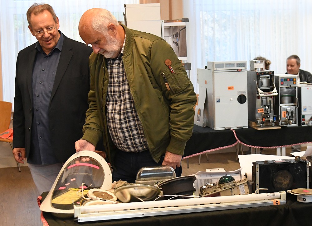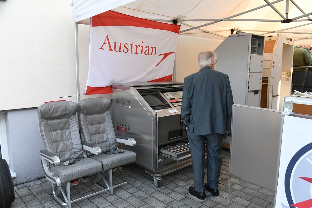 Prall gefüllt war der Pfarrsaal von Fischamend, als die "Interessensgemeinschaft Luftfahrt Fischamend" heute um 16 Uhr zur Eröffnung ihrer Ausstellung "Aircraft Inside" lud, die viele spannende Einblicke hinter die Kulissen der Verkehrsluftfahrt bietet. ILF-Obmann Rudi Ster und sein Team hatten mit Unterstützung vieler helfender Hände und dem Wohlwollen der Austrian Airlines Technik eine beeindruckende Sammlung an Ausstellungsstücken zusammengetragen. Besonders verdient gemacht um die Ausstellung hat sich auch Michael Pfeiffer, im Hauptberuf Techniker bei der AUA. Honorige Luftfahrtpersönlichkeiten wie Benno Beran, Gründungsmitglied des Austrian Aviation Museum, oder die lebende Fischamender Luftfahrt-Legende Gerhard Gruber waren gekommen. Gruber trug einige seiner Anekdoten vor und stand Interessierten für den Verkauf seines Buches "Unglaubliche Luftfahrtgeschichten" zur Verfügung, von dem kürzlich der zweite Band erschienen ist.