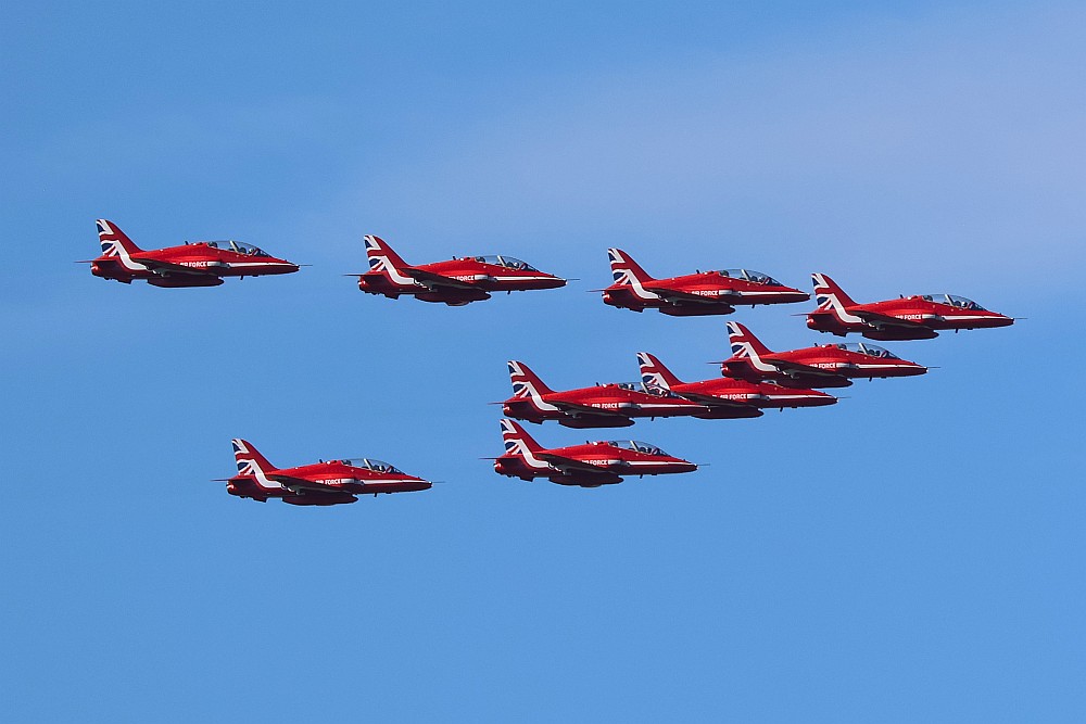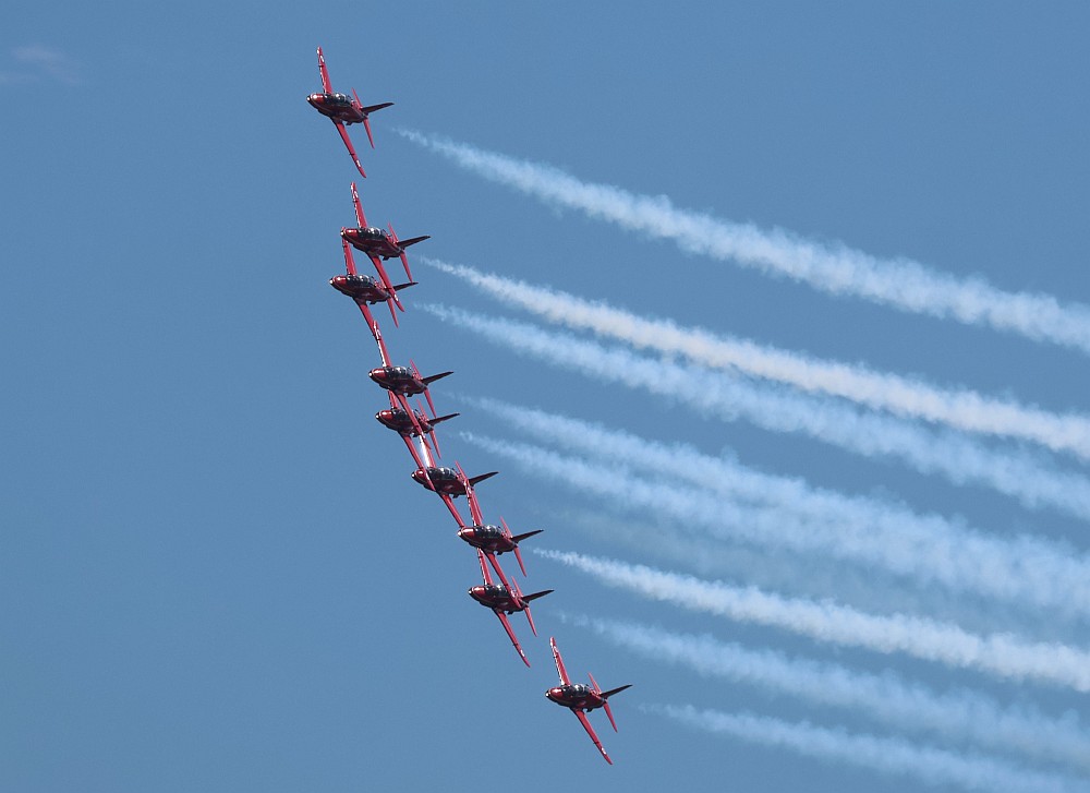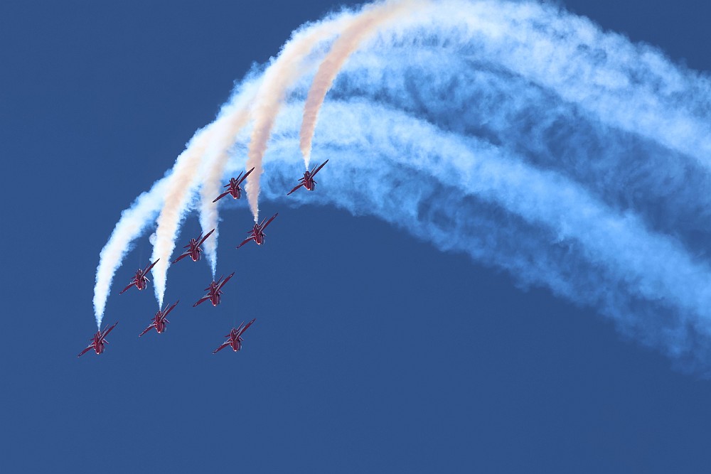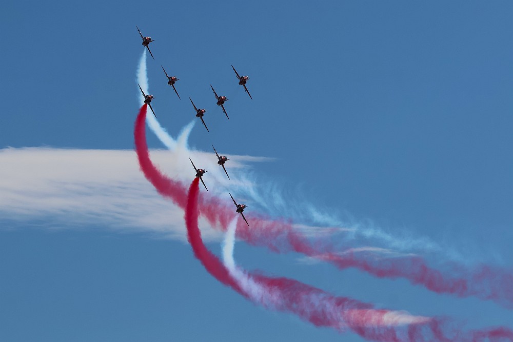 Die britischen Red Arrows haben Ikonen-Status in der Airshow-Szene. Sie zählen neben den italienischen Frecce Tricolori zu den beliebtesten militärischen Kunstflugstaffeln der Welt - alle Fotos: Johannes Bauer