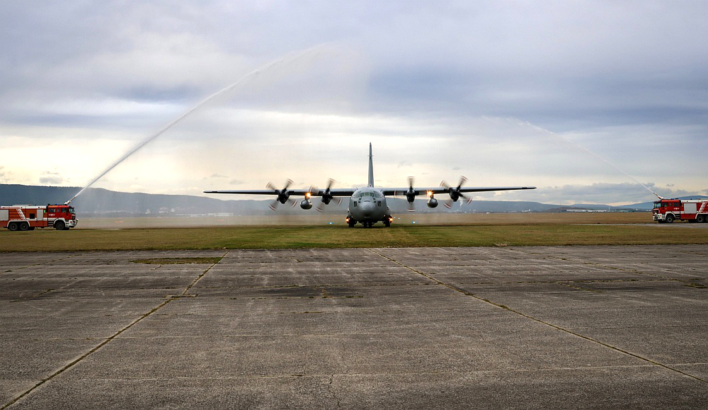 Wie von der Heeresführung auf einer Pressekonferenz angekündigt, wurde die erste von drei aktiven Lockheed C-130 Hercules des Bundesheeres gestern außer Dienst gestellt. Dazu wurde die Maschine mit der Kennung 8T+CA von ihrer Heimatbasis, dem Fliegerhorst Linz Hörsching (Linz ist in der Tat lediglich ein zivil mitgenutzter Militärflugplatz, deshalb verfügt er auch über eine besonders breite Piste, was den wiederholten Besuch der An-225 in Linz ermöglichte), zum Militärflugplatz Wiener Neustadt West (LOXN) überstellt und dort von der Flughafenfeuerwehr mit Wasserfontänen empfangen.