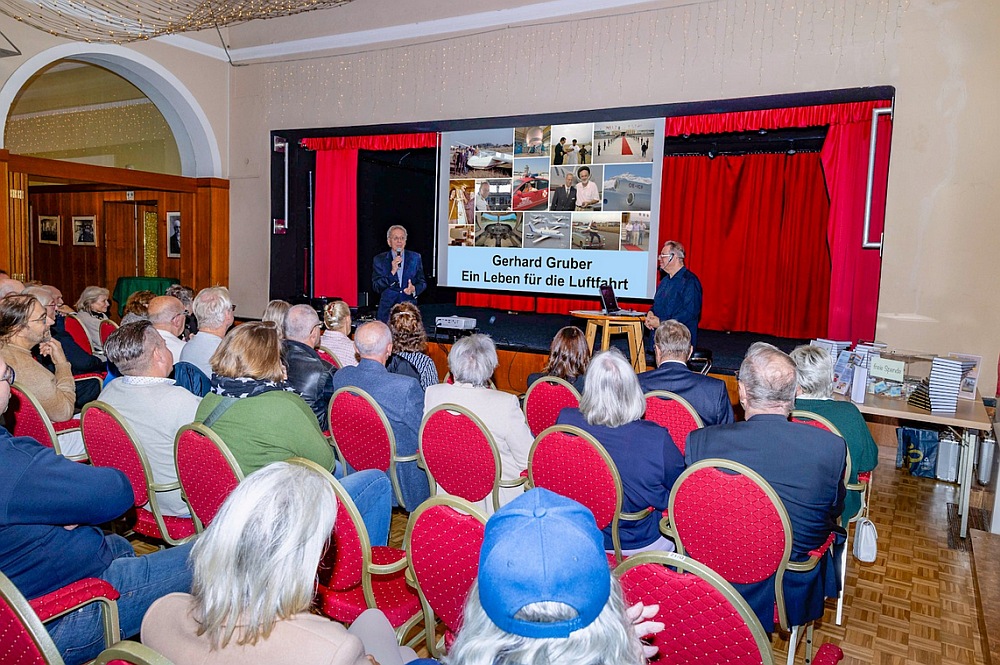 Die humorvolle und spannende Veranstaltung begeisterte mit einem Fotovortrag, der die Highlights eines außergewöhnlichen Fliegerlebens eindrucksvoll in Szene setzte. Mit viel Witz und unterhaltsamen Anekdoten wurde das Publikum zum Staunen und Lachen eingeladen. Durch den Abend führte Peter Bolech, der souverän den Autor und seine aviatischen Meilensteine den Gästen vortrug. "Ein herzliches Dankeschön gilt Sabine Gruber, Christa Neuhauser, Fotograf Herbert Krausler sowie dem Team des Volksheims Fischamend für die tatkräftige Unterstützung", so Gruber.