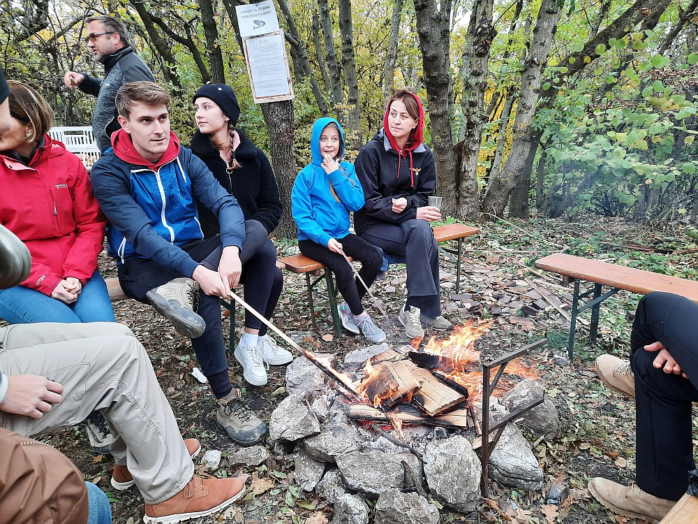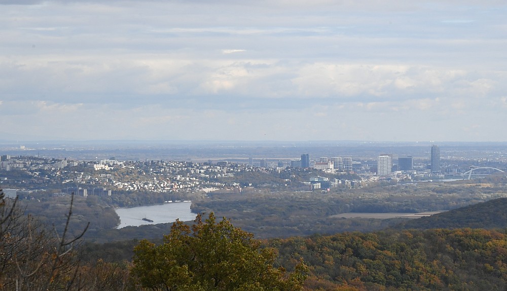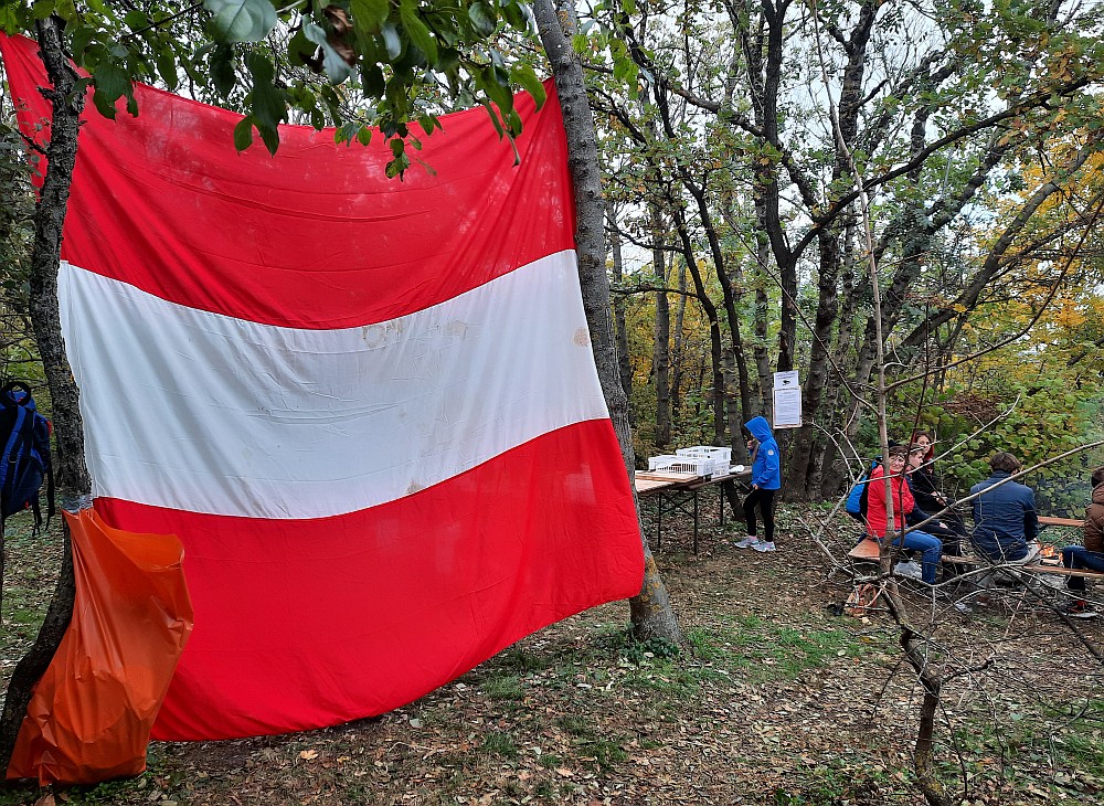 Für die Älteren gab es einen "Shuttle" mit Geländefahrzeugen. Die Aussicht während des Aufstieges und auch vom Gipfel waren überwältigend. Im Osten die slowakische Hauptstadt Bratislava/Pressburg/Pozsony mit der beeindruckenden Burg, im Westen die österreichische Hauptstadt Wien. Neben dem Griller war zwischen zwei Bäumen zur Feier des (Nationalfeier-)Tages die rot-weiß-rote Flagge angebracht und sämtliche Teilnehmer labten sich an Speis und Trank, frönten dem geselligen Beisammensein.