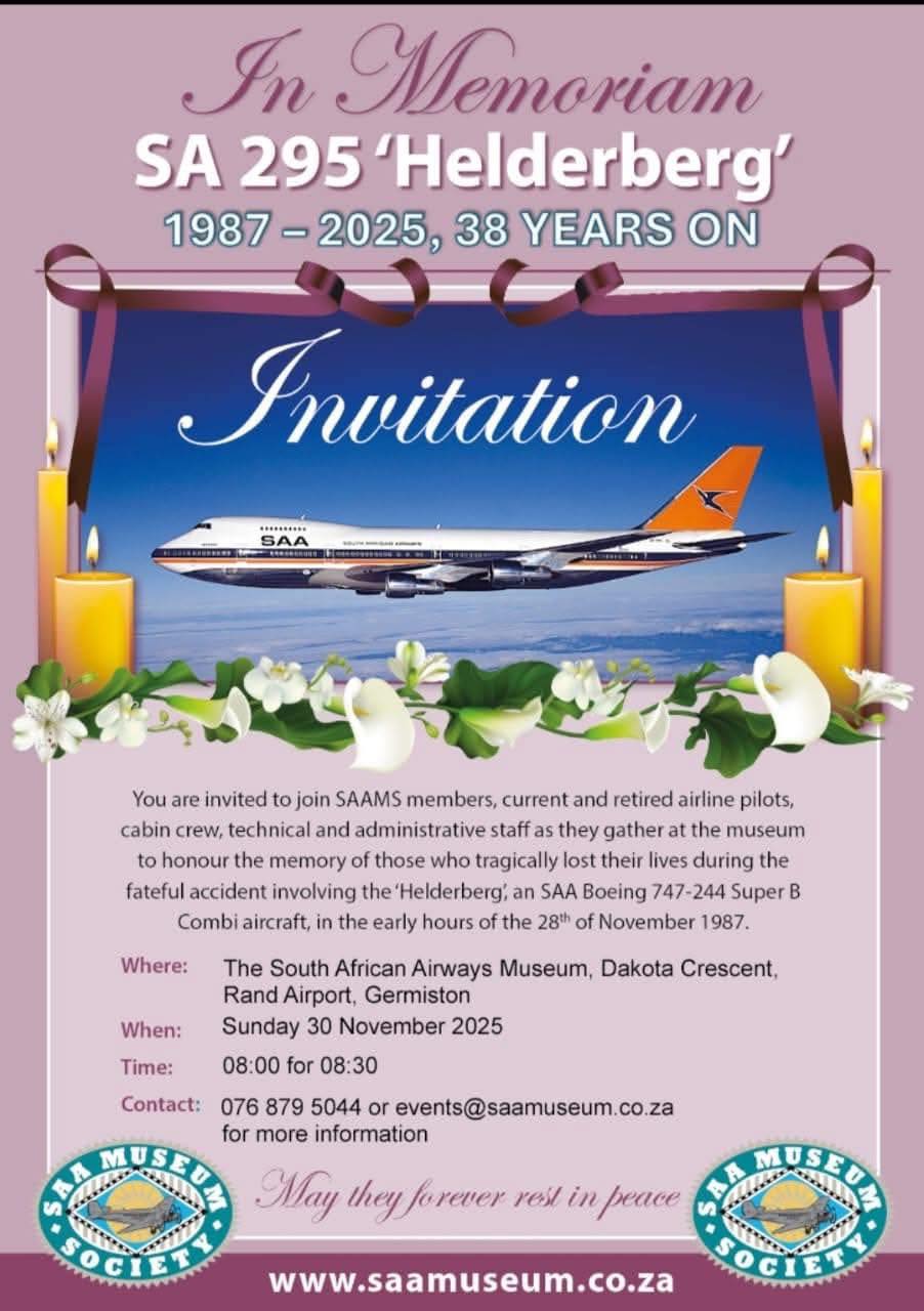 In der Nacht vom 27. auf den 28. November 1987 starben beim Absturz der Boeing 747-244B Combi ZS-SAS "Helderberg" alle 159 Menschen. Das Wrack und fast alle Opfer liegen bis heute auf dem Meeresgrund vor Mauritius.