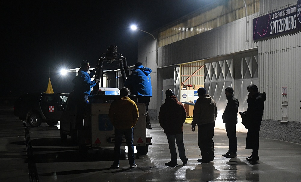 Mit ihrem neue ins Leben gerufenen Weihnachtsmarkt, auf dem es sogar Honig von echten Spitzerberger Bienen gibt, haben sich die Spitzerberger Flieger wieder einmal etwas ganz Besonderes einfallen lassen. So kam am Freitag der Nikolaus höchstpersönlich vorbei, um die zahlreich anwesenden Buben und Mädchen zu beschenken. Darüber berichtete sogar die Tageszeitung "HEUTE". Am gestrigen Samstag war dann der Aufstieg eines Fesselballons geplant, doch zunächst machte der starke Wind diese Pläne zunichte - Sicherheit ist in der Luftfahrt oberste Prämisse und so musste der Ballon am Boden bleiben. Nachdem der Wind dann gegen 19 Uhr abgeflaut war, entschied sich Ballon-Pilot Ferdinand Huber dann, dass er den Ballon aufbauen würde. Die Fliegerei (dazu zählt auch die Ballonfahrerei) ist eine Sportart, in der es ohne Teamwork und Kameradschaft nicht geht. Viele helfende Hände waren sofort zur Stelle, als es galt, den Ballon aufzurüsten. Die gute Stimmung kam dabei nicht zu kurz, denn aus den Lautsprechern erklangen Songs wie "99 Luftballons" von Nena oder "Major Tom - völlig losgelöst" von Peter Schilling.