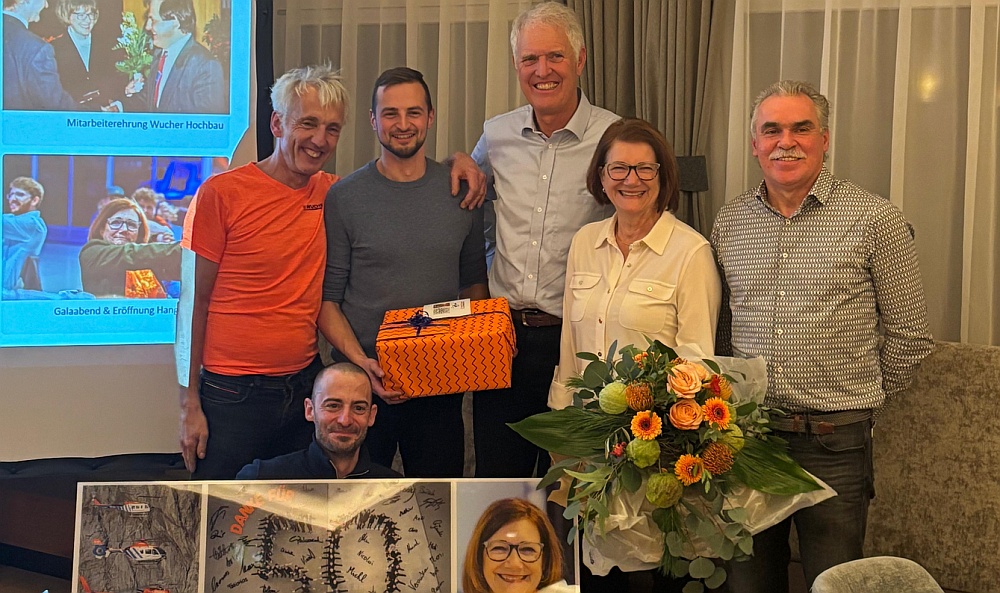 Im Anschluss erhielt die Alleingesellschafterin des Unternehmens, Monika Huber, eine spezielle Ehrung für ihre Verbundenheit und Zugehörigkeit mit Wucher Helicopter seit der Gründung vor 50 Jahren.
