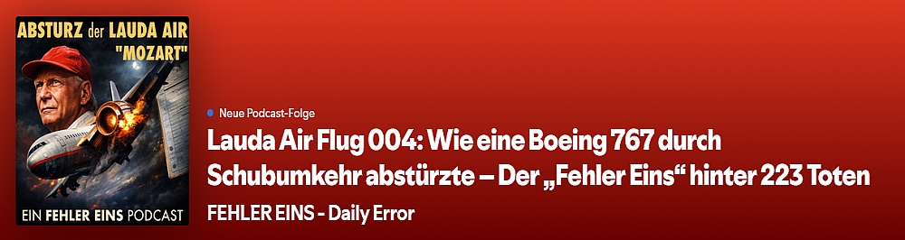 Hier geht's zum Podcast von "Fehlereins.de" über den Absturz der Lauda Air.