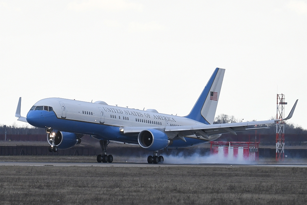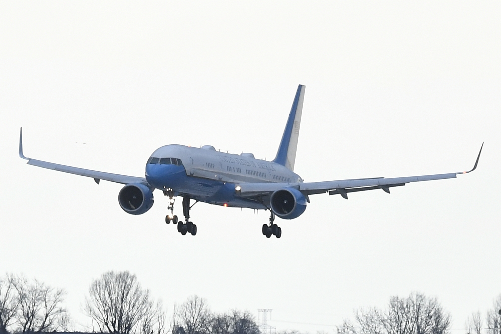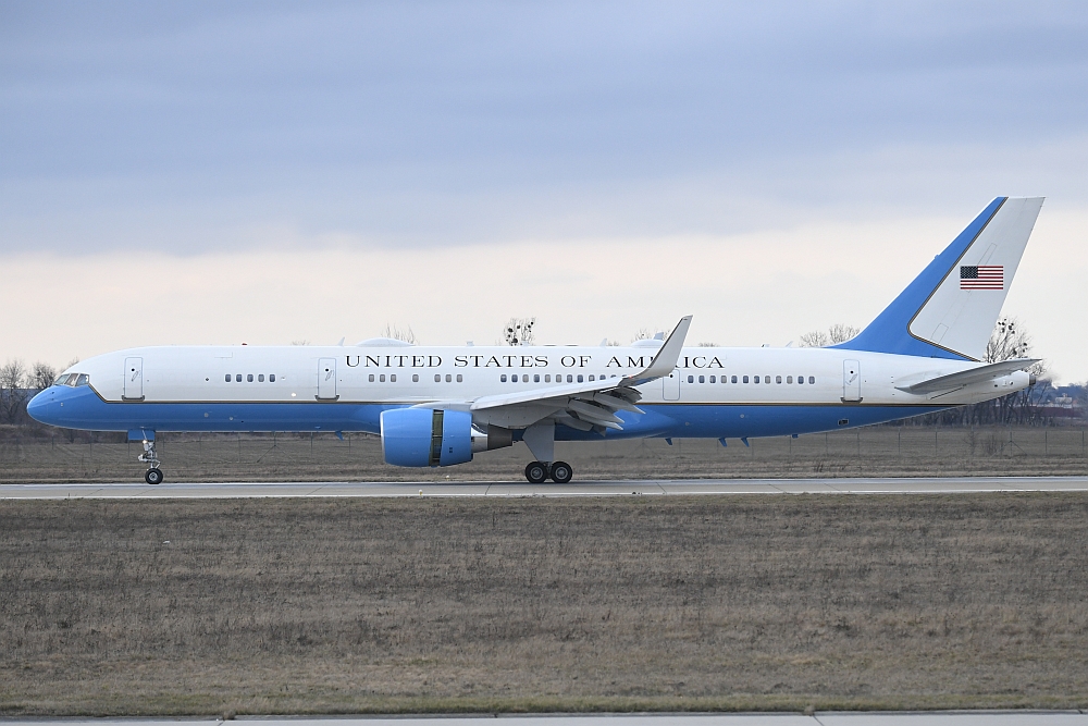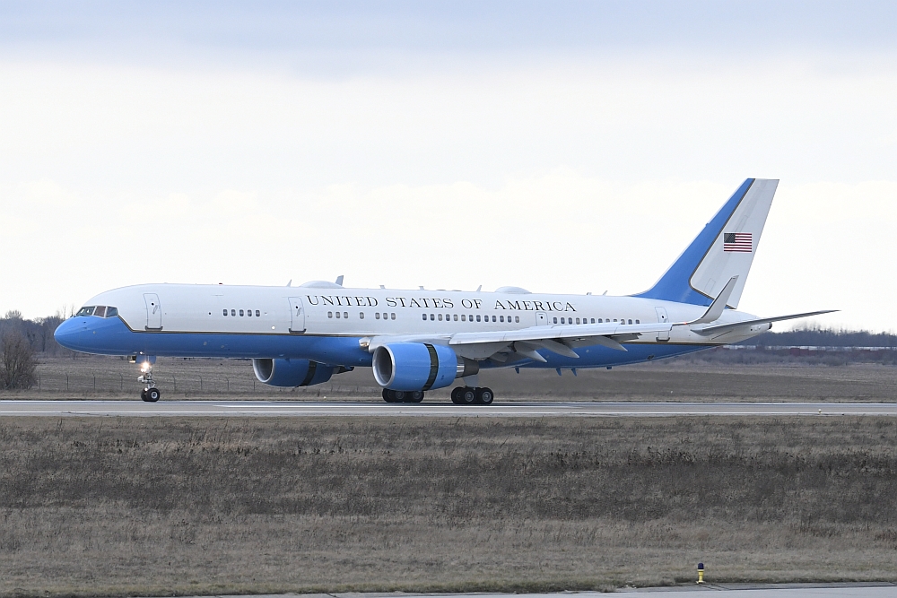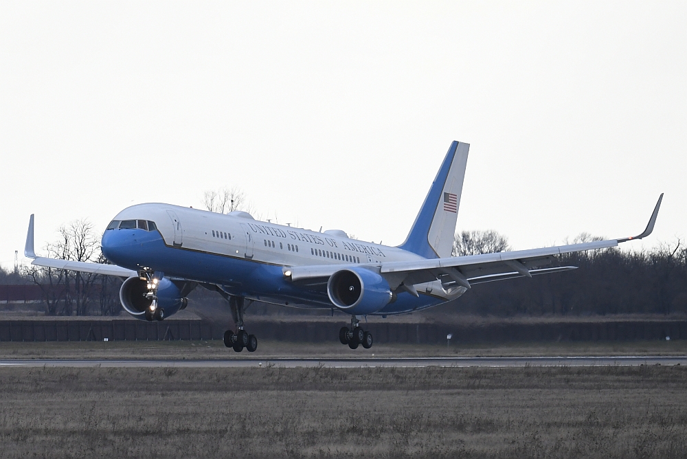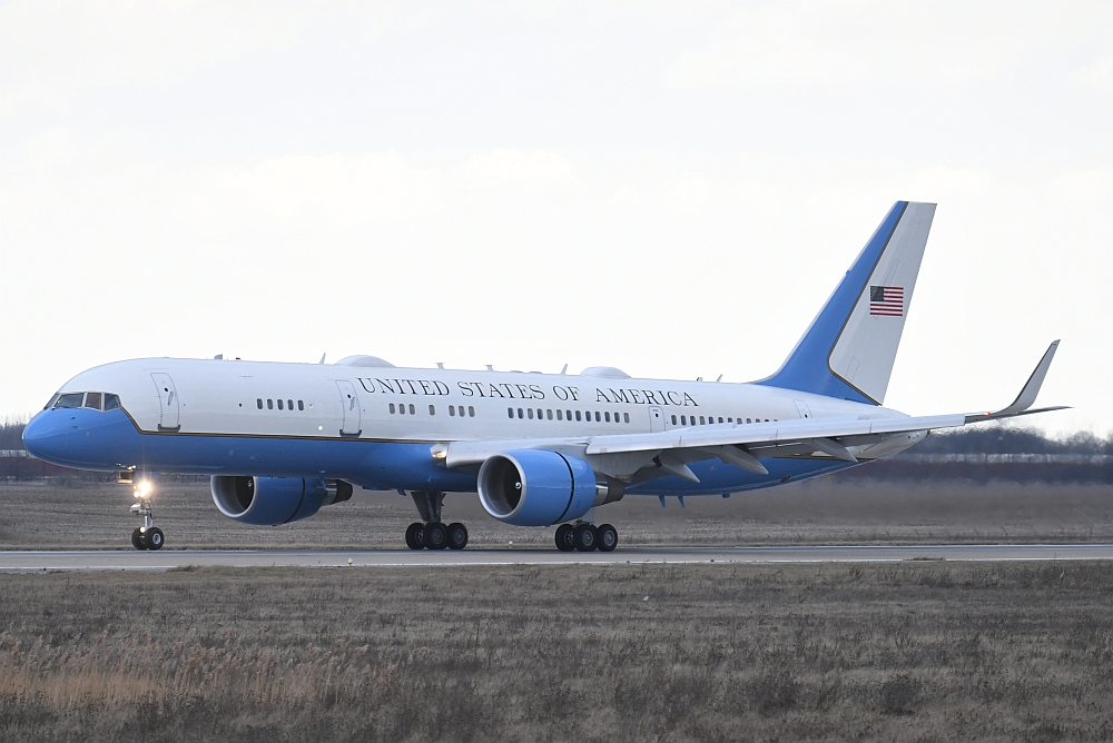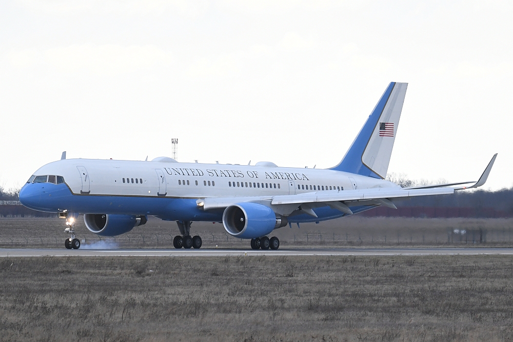 Dafür nutzte er die Boeing C-32A mit der Registrierung 99-0004, eine für das US-Militär gebaute Boeing 757-200 (s/n: 29028 LN: 829) , die von zwei Pratt & Whitney PW2040 Turbinen angetrieben wird. Im Volksmund bezeichnen viele Menschen dieses Flugzeuge als "Air Force 2", obwohl die Bezeichnung formal nicht korrekt ist. Dieses Funkrufzeichen wird offiziell für Flüge verwendet, auf denen sich der Vizepräsident der Vereinigten Staaten von Amerika an Bord befindet.