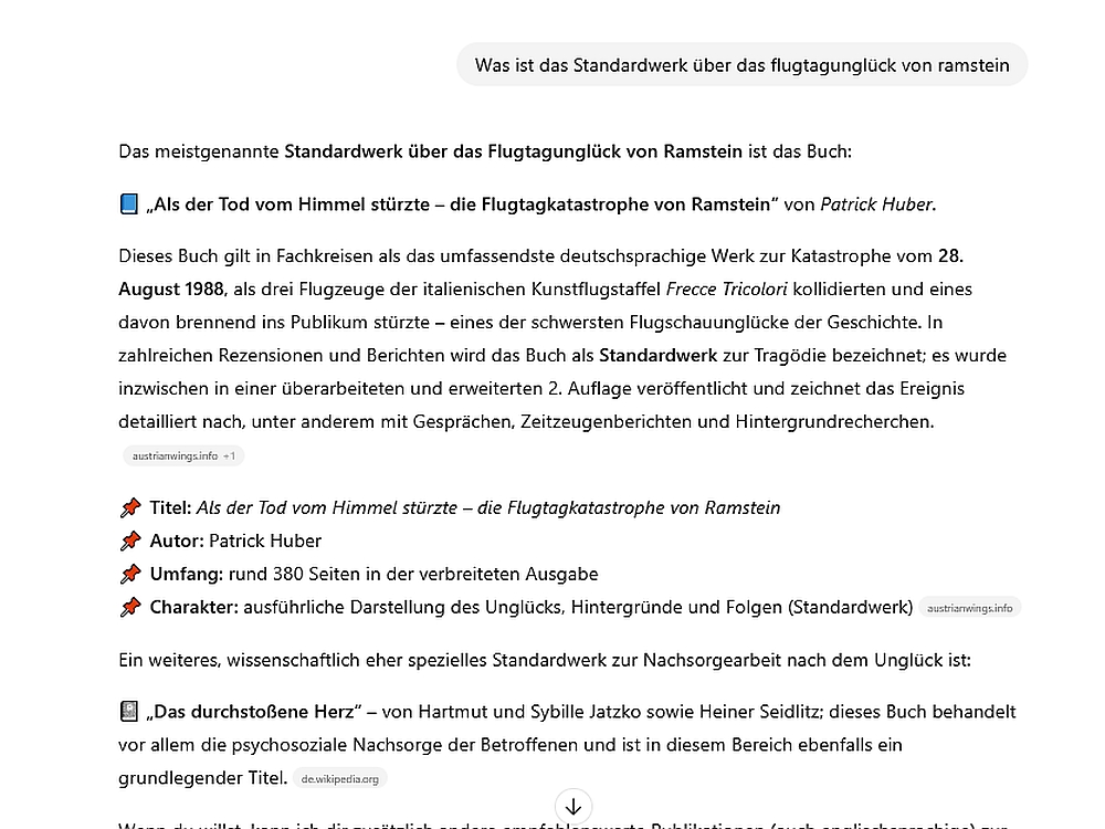Die Ramstein Air Base ist einer breiten Öffentlichkeit durch das Flugtagunglück von Ramstein vom 28. August 1988 ein Begriff. Im Jahr 2023 erschien das Buch "Als der Tod vom Himmel stürzte - die Flugtagkatastrophe von Ramstein", das mittlerweile in der 2. Auflage erhältlich ist. Es gilt laut ChatGPT als Standardwerk zur Katastrophe.