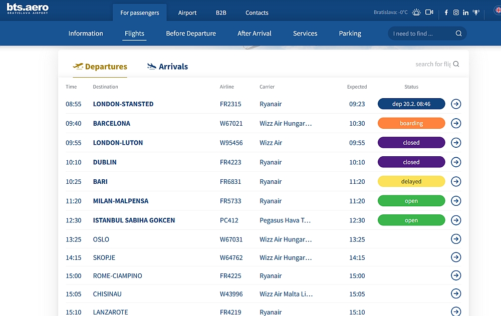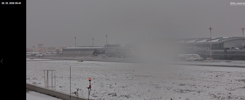 Nur eine halbe Autostunde östlich des Wiener Flughafens liegt der Flughafen Bratislava Stefanik. Obwohl auch dort winterliche Wetterbedingungen herrschen, läuft der Flugbetrieb völlig normal.