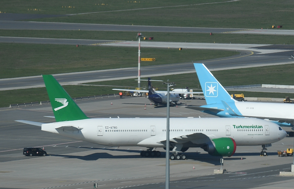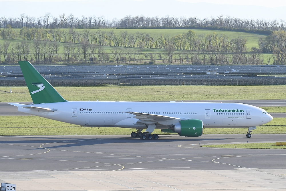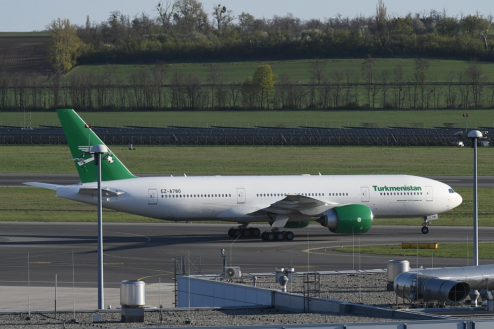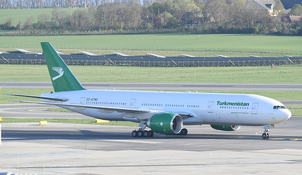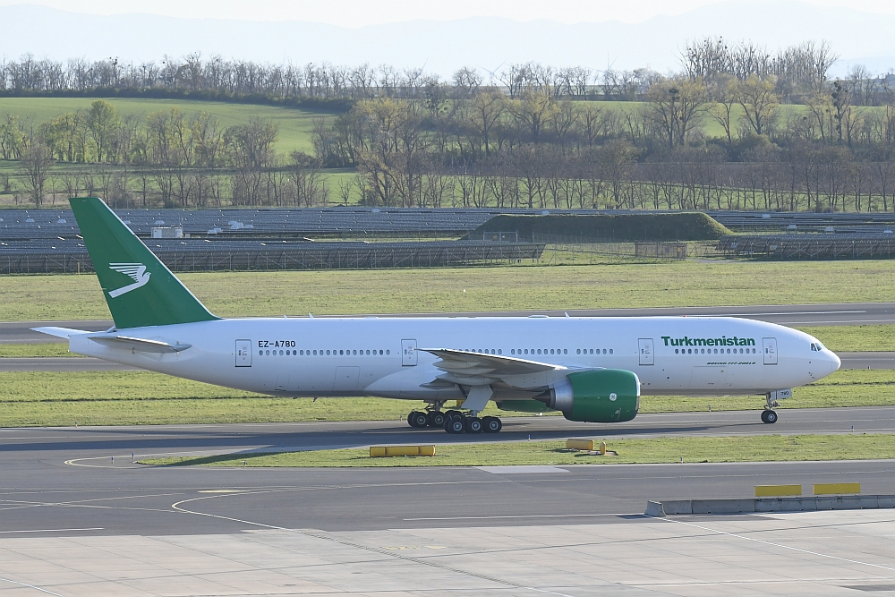 Es war gegen 18 Uhr als die Boeing 777-200LR der turkmenischen Regierung auf der Piste 34 des Flughafens Wien Schwechat zur Landung ansetzte. Gelotst von einem Follow me Fahrzeug rollte das Flugzeug mit der Kennung EZ-A780 zur Parkposition auf dem Alpha-Block. Der hohe Besuch wurde danach mit Polizeieskorte in die Wiener Innenstadt gebracht.