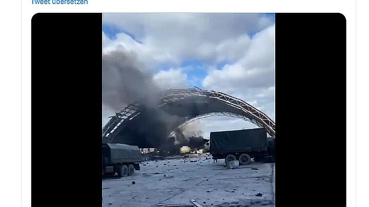 Ukraine-Krieg: Aufnahmen zeigen zerstörte AN-225 in Hostomel