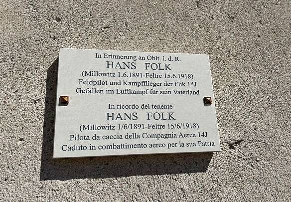 In der Region Venetien wurde nun eine zweisprachige (Deutsch/Italienisch) Gedenktafel für den 1918 gefallenen österreichischen Kampfpiloten Hans Folk…