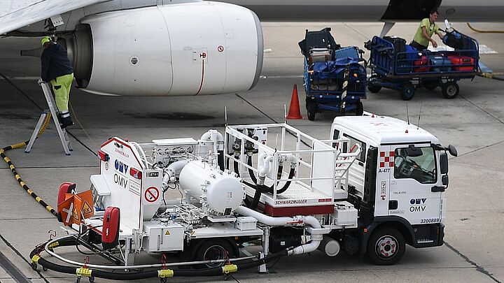 Seit März 2022 beliefert die OMV Austrian Airlines im Rahmen der aktuellen Zusammenarbeit mit nachhaltigem Flugzeugtreibstoff (SAF).