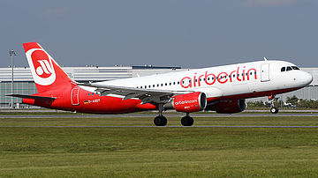 Ein Airbus A320 der insolventen deutschen Air Berlin ist heute auf Sylt über das Pistenende hinausgeschossen. Verletzt wurde niemand.