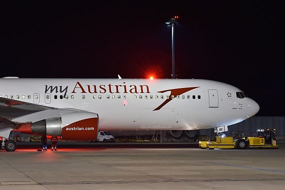 Als erstes Großraumflugzeug hat die Boeing 767-300ER mit dem Kennzeichen OE-LAY die neuen "MyAustrian"-Farben erhalten.