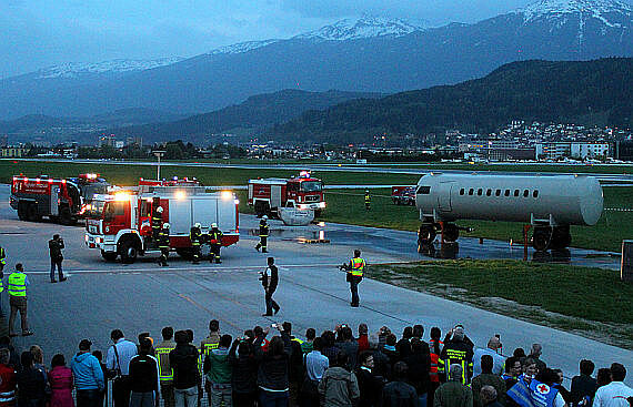 Heute gegen 18 Uhr startete auf dem Flughafen Innsbruck eine Notfallübung.