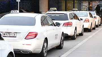 Die neuen umweltfreundlichen Hybrid-Taxis von Airport Transfer Service wurden von Sonja Zwazl, Präsidentin der Wirtschaftskammer Niederösterreich, DI…