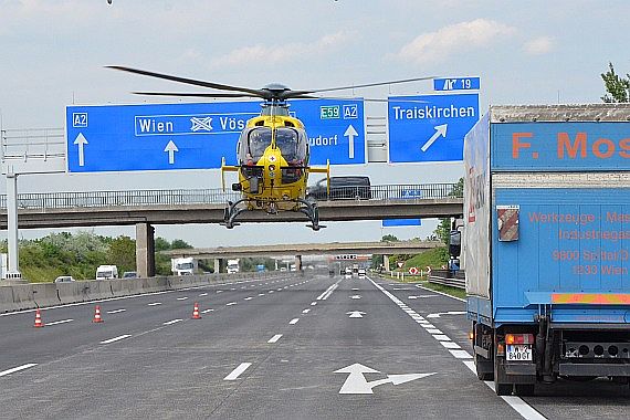 Zu einer spektakulären Landung des Wiener Neustädter Notarzthubschraubers Christophorus 3 kam es heute Nachmittag auf der Südautobahn zwischen Baden…
