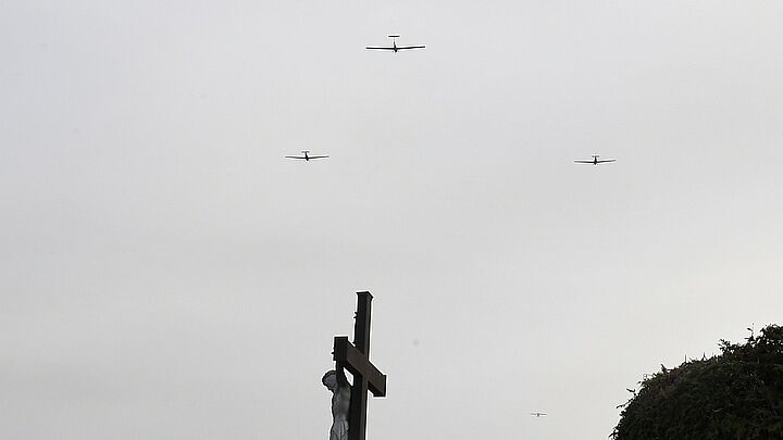 Abschied von Spitzerberger Pilotenlegende Rudi Wenighofer: Ehrenformation überflog offenes Grab